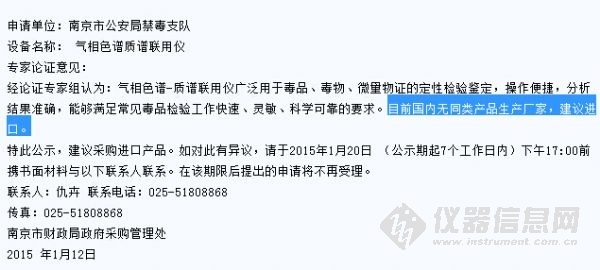 近日,某單位在申請采購GCMS(氣相色譜質譜聯(lián)用儀)時,論證專家組以“目前國內無同類產品生產廠家”為由,建議該單位采購進口GCMS。