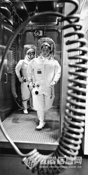科研人員在P4實(shí)驗(yàn)室內(nèi)進(jìn)行各項(xiàng)適應(yīng)性實(shí)驗(yàn)演練。