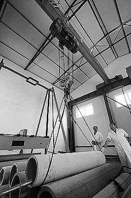 技術(shù)人員正對水泥柱進(jìn)行檢測