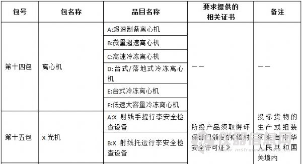 2015年4月22日,中機國際招標公司就“國家質(zhì)檢總局2015年專用儀器設(shè)備采購項目”招標公告,此次招標儀器種類涉及氣相、液相、氣質(zhì)、離子色譜、凝膠色譜、PCR、全自動生化系統(tǒng)等30大類、113個品目。 質(zhì)檢總局專用儀器設(shè)備采購項目始于2006年,每年集中招標采購一次,由此產(chǎn)生當(dāng)年的協(xié)議供貨商,即入圍產(chǎn)品。在當(dāng)年有效期內(nèi),質(zhì)檢總局所屬各單位采購儀器必須在協(xié)議供貨商范圍內(nèi)選擇,而且采購價格不得高于協(xié)議中標價格。 2015年招標詳情如下所示: 采購人名稱:國家質(zhì)檢總局 采購人地址:北京市海淀區(qū)馬甸東路9號 采購人聯(lián)系方式:010-82262074 采購代理機構(gòu)名稱:中國通用咨詢投資有限公司中機國際招標公司 采購代理機構(gòu)地址:北京市豐臺區(qū)西三環(huán)中路90號通用技術(shù)大廈 采購代理機構(gòu)聯(lián)系方式:010-63348490 010-63348489 采購用途:質(zhì)量監(jiān)督檢驗檢疫 簡要技術(shù)要求:符合質(zhì)量監(jiān)督檢驗檢疫的業(yè)務(wù)需求 招標項目的性質(zhì):政府采購 0702-1541CITC5M01