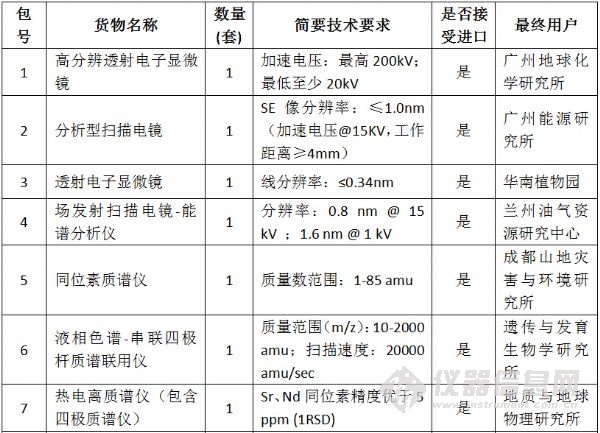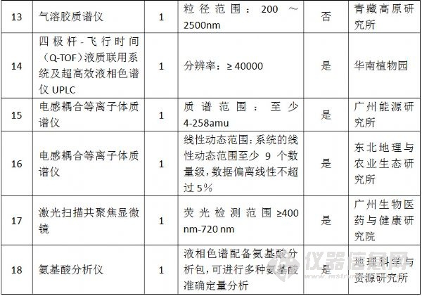 近日,中國(guó)科學(xué)院2015年儀器設(shè)備部門集中采購(gòu)項(xiàng)目(第一批)開始招標(biāo),本次項(xiàng)目共計(jì)采購(gòu)18套高端分析儀器,其中含12套質(zhì)譜、4套電鏡、1套激光掃描共聚焦顯微鏡及1套氨基酸分析儀。 值得注意的是,本次采購(gòu)的18套儀器中有17套允許采購(gòu)進(jìn)口品牌投標(biāo),但有一套氣溶膠質(zhì)譜儀則限定為國(guó)產(chǎn)品牌。 話說,2011年廣州禾信的氣溶膠飛行時(shí)間質(zhì)譜儀曾以單臺(tái)320萬的價(jià)格中標(biāo)中科院過程所科研儀器設(shè)備采購(gòu)項(xiàng)目,不知此次的氣溶膠質(zhì)譜儀采購(gòu)項(xiàng)目是否仍會(huì)花落廣州禾信?讓我們拭目以待! 具體采購(gòu)內(nèi)容如下所示: