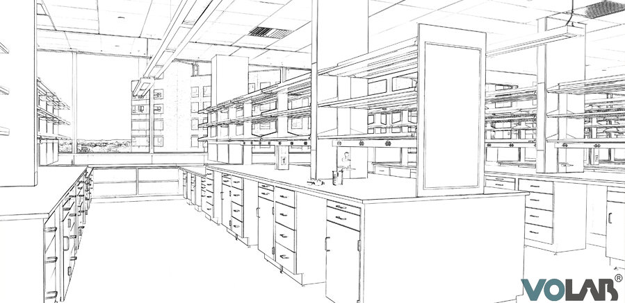 在設(shè)計(jì)化學(xué)分析實(shí)驗(yàn)時(shí),通常在實(shí)驗(yàn)室中央配置從兩面都能夠操作的中央實(shí)驗(yàn)臺(tái),兩邊配置邊實(shí)驗(yàn)臺(tái)、測(cè)試臺(tái)、通風(fēng)柜、藥品柜、干燥柜等,根據(jù)需要配備凈化臺(tái)、恒溫恒濕設(shè)備,為了盡可能多地增加使用空間,往往還需配備一些平面型實(shí)驗(yàn)臺(tái)。