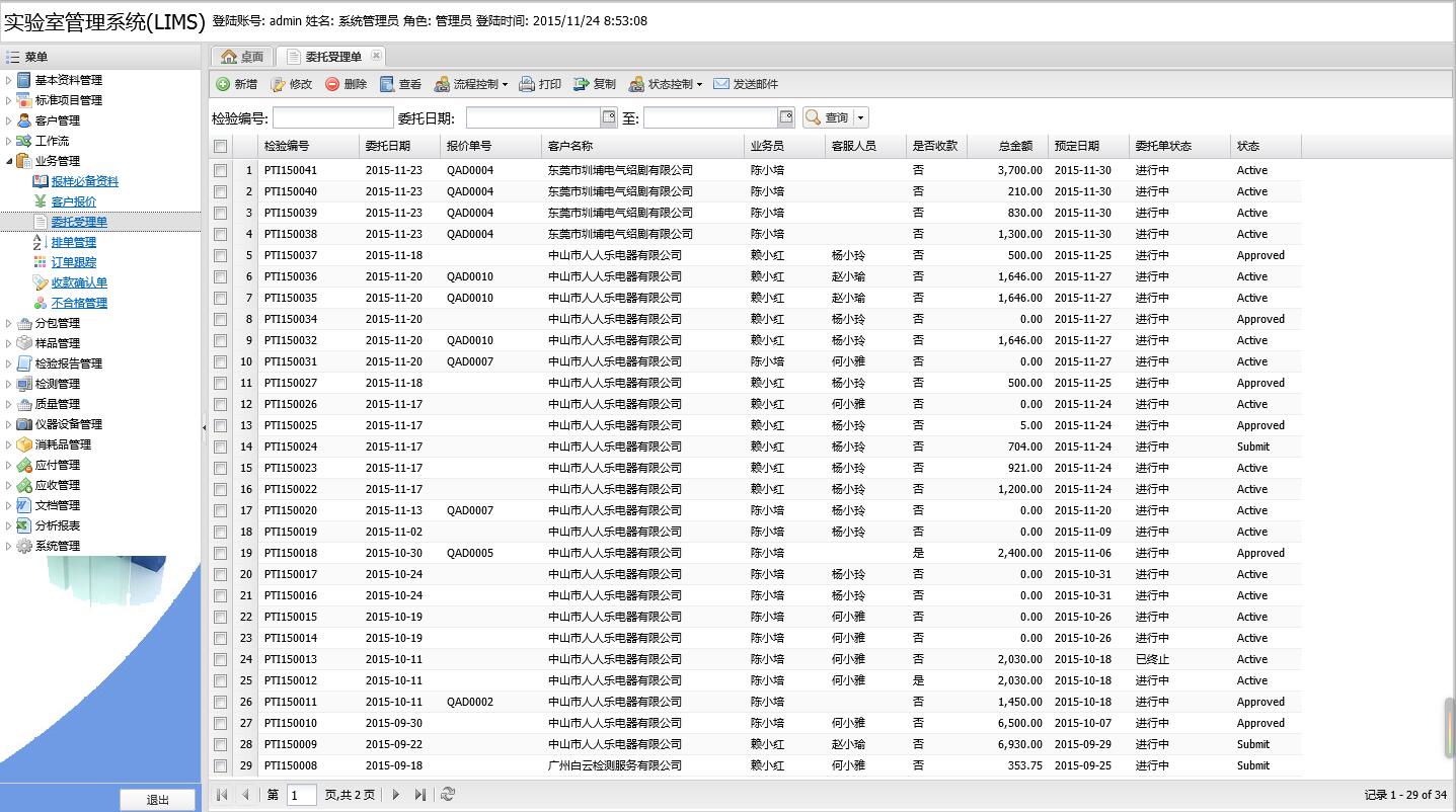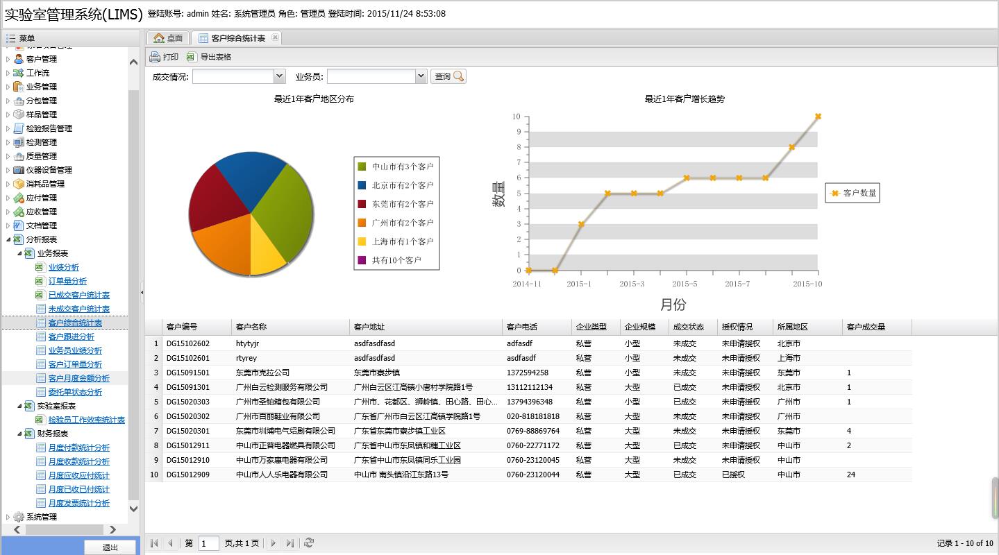 -------------針對業(yè)務、實驗室、財務提供多種類型的分析統(tǒng)計報表.