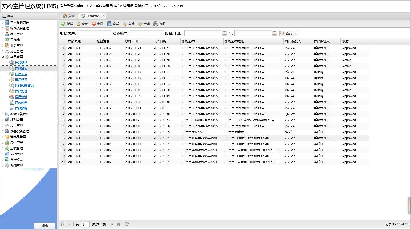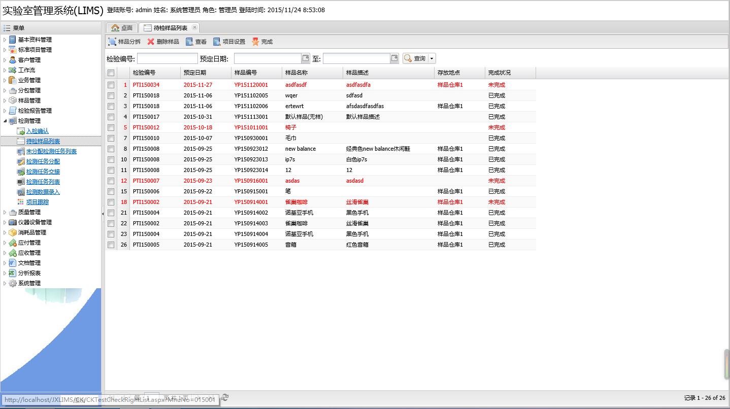 -------------該功能主要用于記錄實驗室入檢、檢測過程、檢測結果跟蹤