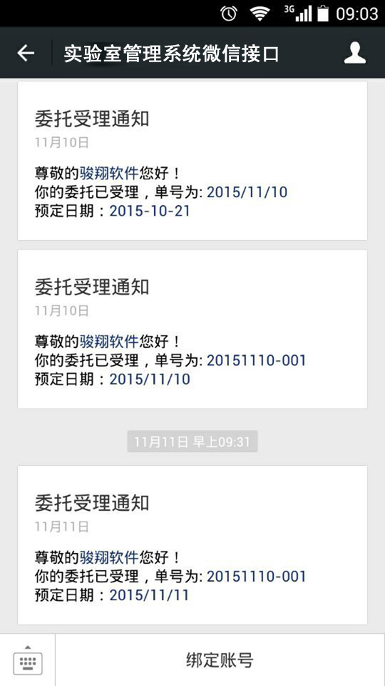2、當(dāng)客服人員對委托單進(jìn)行新增,審核等操作的時候,系統(tǒng)會自動給委托單所屬的客戶進(jìn)行發(fā)送通知。讓客戶隨時隨地了解委托單的狀態(tài)。
