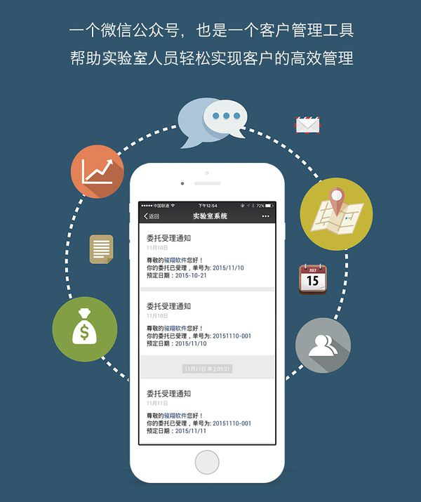 1、微信功能是本系統(tǒng)為實(shí)驗(yàn)室與客戶打造的專屬功能,可以輕松發(fā)布實(shí)驗(yàn)室公告、辦事指南等。