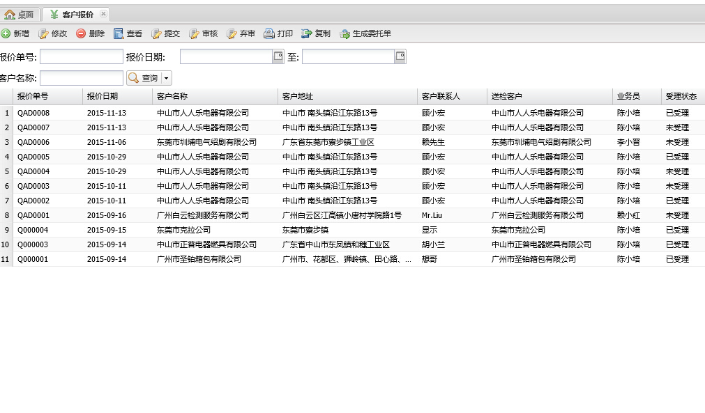 2、已審核報(bào)價(jià)單可直接生成委托單